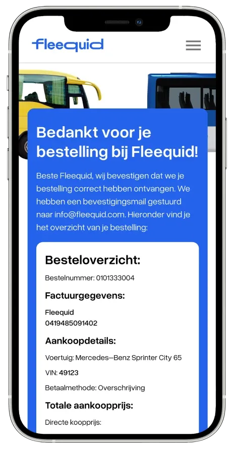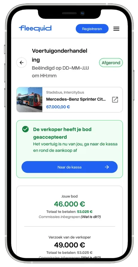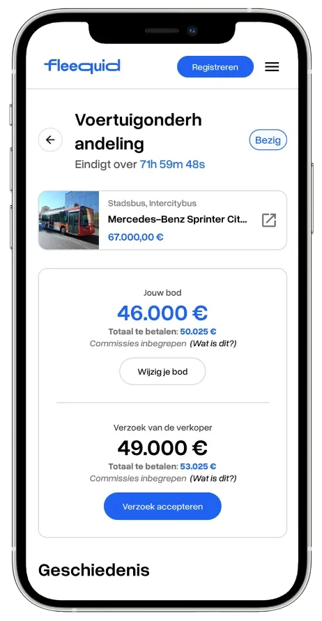 Met Fleequid is het hele verkoopproces duidelijk en gedigitaliseerd. Alle geregistreerde kopers zijn geverifieerde professionals en hun biedingen zijn bindend dankzij de borgsom.